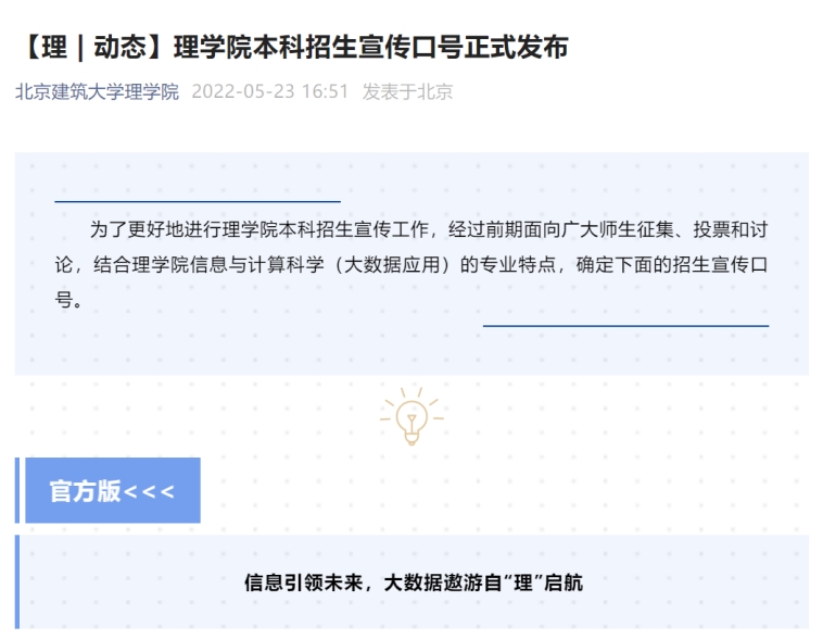 本次活动教师积极响应,共征集26份宣传口号。经过在四川麻将游戏 公众号上公开投票投票、四川麻将游戏 讨论基础上,结合四川麻将游戏 信息与计算科学(大数据应用)的专业特点,确定了最终宣传口号,并通过“四川麻将游戏 ”微信公众号正式发布。