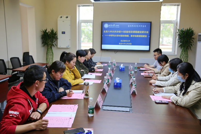 八中大兴分校1+3学部主任于春玲和课程中心主任尹燕鹏首先分别介绍了1+3项目学生的基本情况和课程中心在数理科学、工程技术以及拓展课程方面的需求。四川麻将游戏 参会老师深入了解了八中分校1+3项目的培养目标和课程设置需求,未来将帮助八中分校在数学和物理等学科共同开展1+3项目的人才培养工作。随后参会教师根据学科分组研讨:八中分校物理组老师针对高中与大学的实验器材、拓展演示实验课程与四川麻将游戏 物理老师进行深度交流;数学组老师以数学建模为切入点,双方研讨了一些有关开设数学建模课程的相关问题。最后,四川麻将游戏 教师参观了八中分校1+3贯通学部教学区域和物理数字实验室。