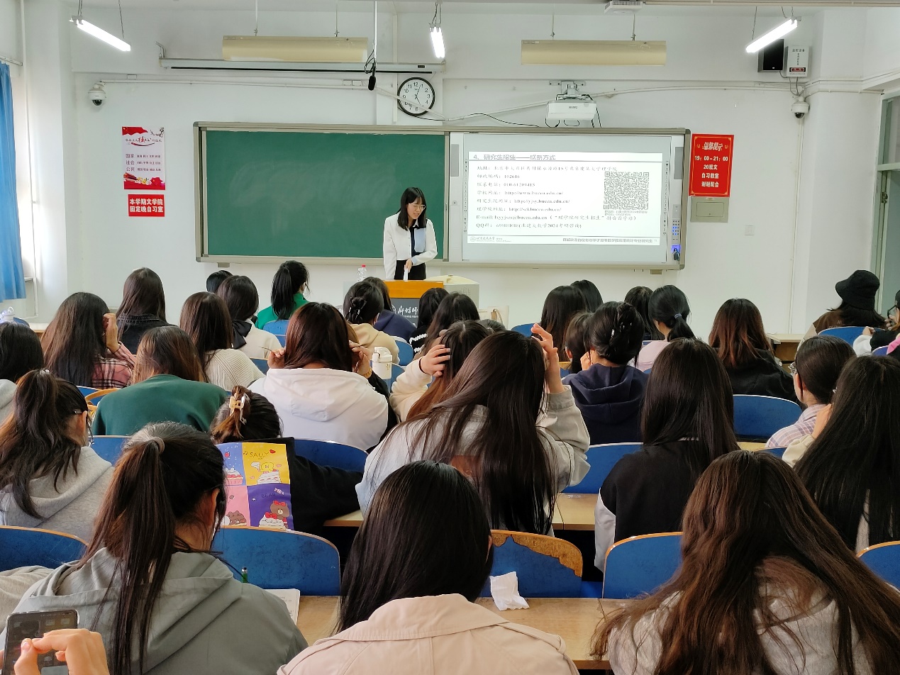 宣讲会上,刘春燕老师首先从北京建筑大学的历史底蕴入手,为现场学子介绍了我院的科研学术、学位点建设、导师团队、国际学术影响力、招生目录与参考书目、研究生培养等情况,充分展示了我院科研学术水平以及研究生培养的亮点与特色;并重点介绍了我院即将开展的优秀大学生夏令营活动,欢迎感兴趣的同学积极参加。宣讲结束后,现场学子就我校研究生培养、就业等情况积极提问,宣讲现场气氛热烈。刘老师针对学生的提问均给予耐心解答,并就如何备战考研给同学们提出了宝贵的建议,她强调要明确考研动机,夯实基础,将课本、笔记“吃”透弄懂,以积极的心态全力备考。