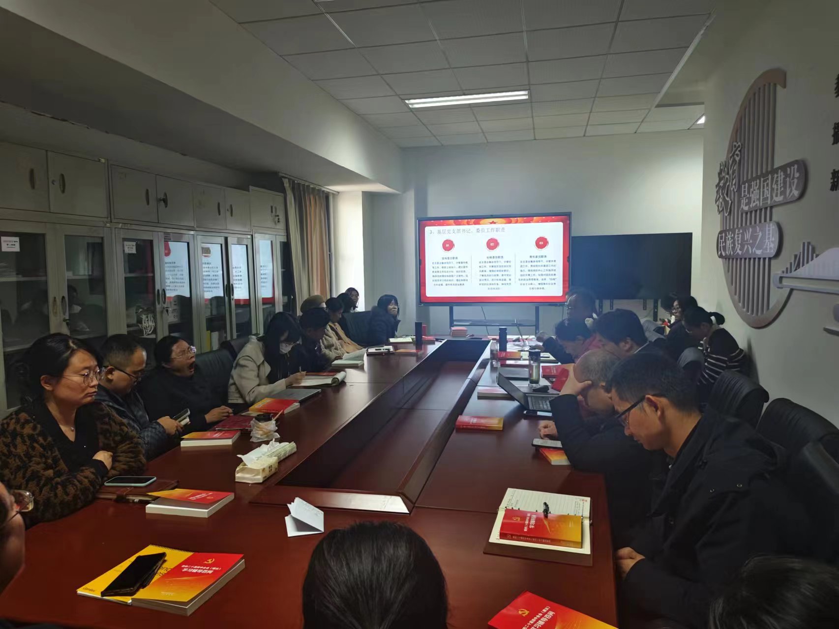 同时,毛发虎结合《中国共产党支部工作条例(试行)》、《中国共产党普通高等学校基层组织工作条例》等党内法规,详细解读了支部书记、组织委员、宣传委员、纪检委员等岗位的职责分工,并就如何优化组织架构、规范组织生活、强化党员教育管理等方面提出了具体要求。并鼓励党务工作者以习近平新时代中国特色社会主义思想为指导,带头学理论、强业务、转作风,切实将党建工作与教学科研、人才培养等中心工作深度融合,推动“党建+”模式落地见效。