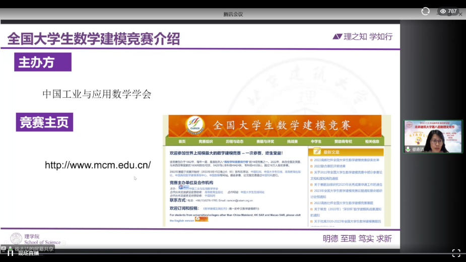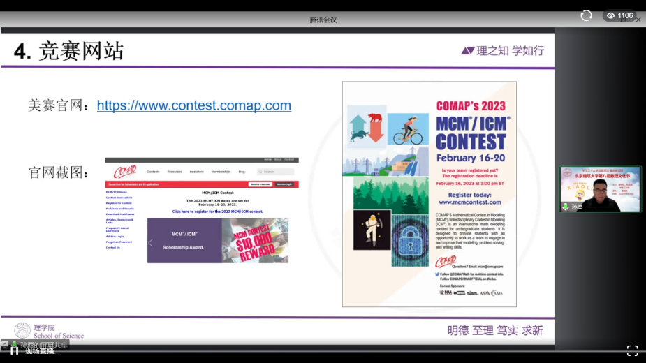 孙愿老师分享了美国大学生数学建模竞赛的组织情况、参赛方式等。