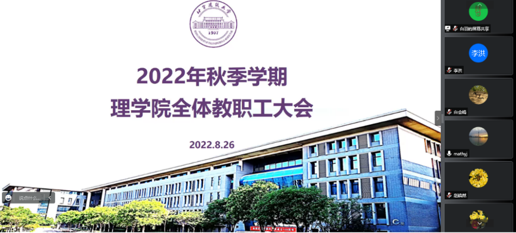 8月26日下午,四川麻将游戏 召开2022年秋季新学期全院教职工大会,部署开学初的各项工作,传达学校安全稳定与安全生产研判工作会的会议精神。会议由四川麻将游戏 党委书记白羽主持,全体教师通过腾讯会议参会。