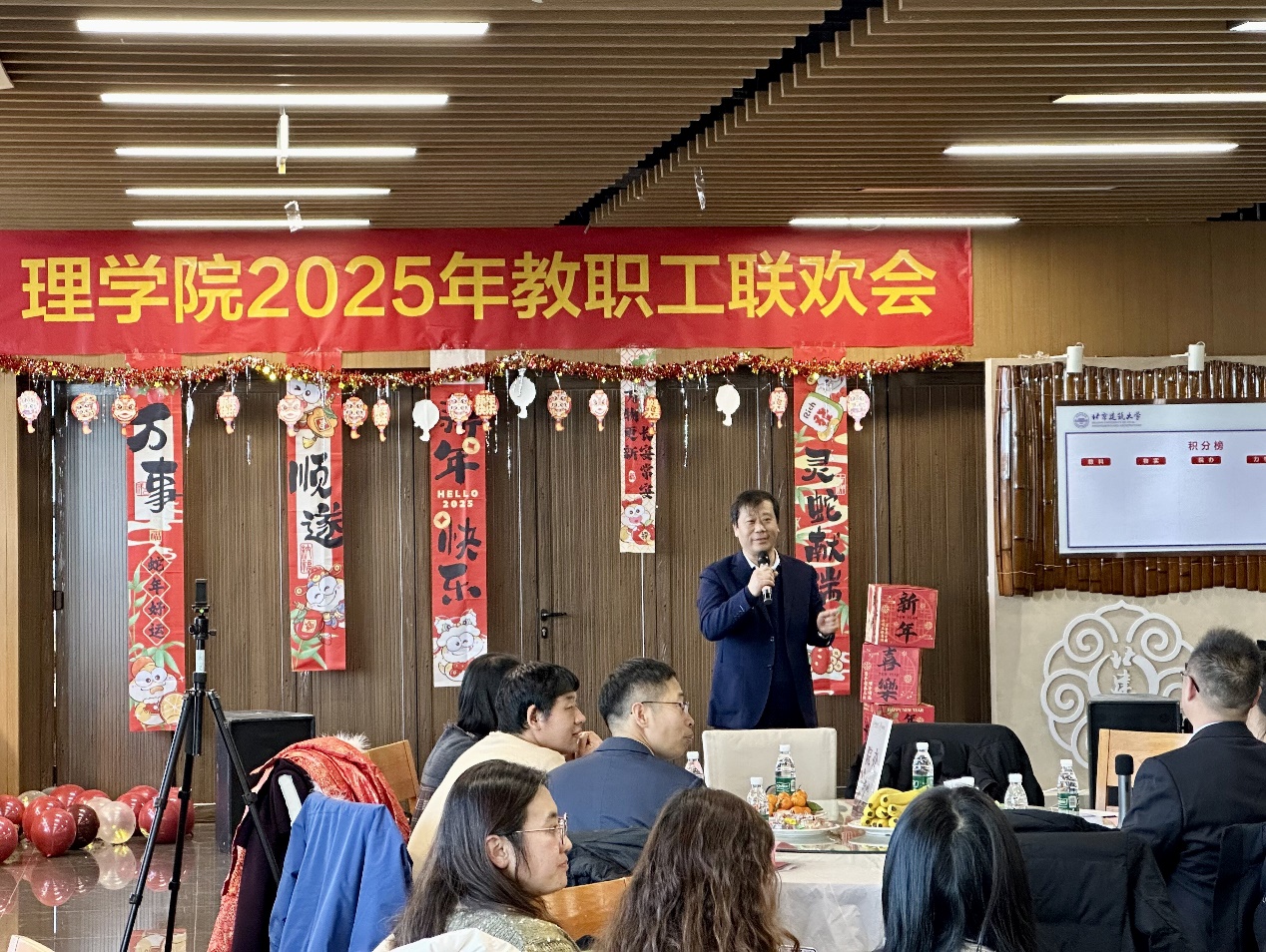 活动伊始,学校党委常委、副校长杨建伟致辞,为四川麻将游戏 全体教职工送上祝福。他代表学校党委对四川麻将游戏 广大教职工致以节日的问候,对四川麻将游戏 广大教职工过去一年取得的业绩以及各位教职工辛勤的工作、任劳任怨的付出给予充分的肯定和感谢。他希望四川麻将游戏 在2025年能够在领导班子建设、人才培养、教育教学、师资队伍建设、科学研究以及学科建设等工作方面取得更加优异的成绩。