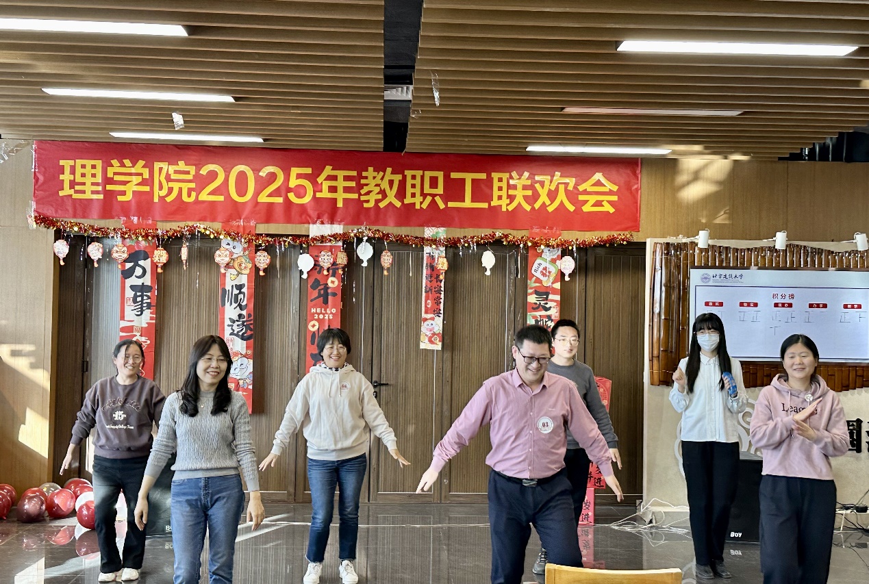 联欢会除了由丰富的节目表演,还设有趣味盎然的游戏互动环节。《你画我猜》游戏充分展现非凡的智慧与想象力,还有教职工之间的默契程度。经历了头脑风暴,加加下来是轻松愉悦《数字炸弹》游戏,让广大教职工忘却了工作的压力,沉浸在无尽的欢声笑语中。接下来,是战性极强和配合性要求高的《兵乓球接力》游戏,迎来一场速度与协作的较量。在《包饺子》游戏互动环节充分展现各系团结协作能力。最终,四轮游戏结束后根据积分:大学生物理与实践创新中心获得一等奖,办公室、图学系获得二等奖。数学与数据科学系、力学系获得一等奖。